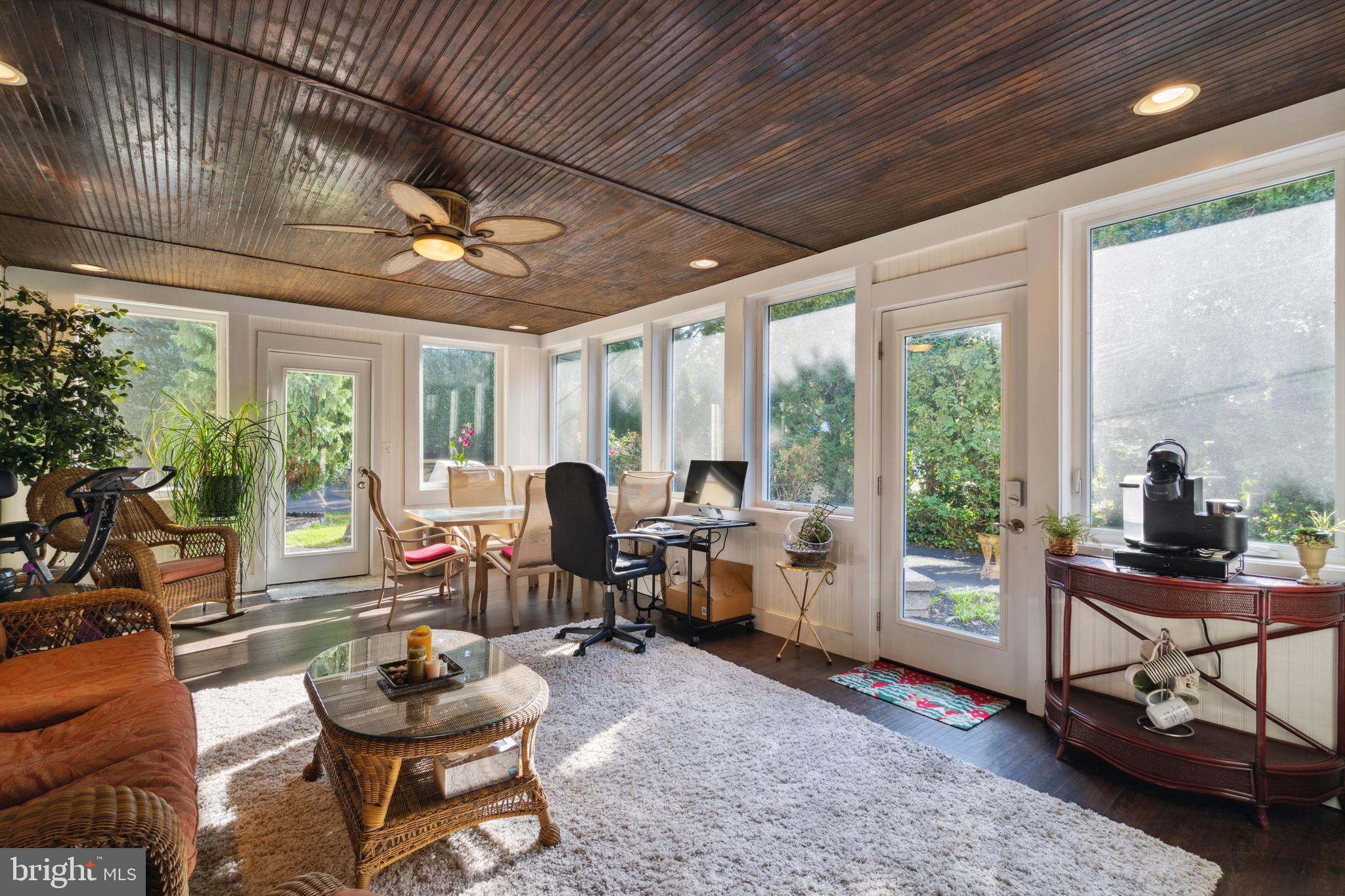 Welcome home to this beautifully maintained center hall stone colonial in coveted Melrose Park. Walk into your spacious foyer with beautiful wainscotting and to your right, be greeted by your enormous sunken living room and bay window. The living room boasts a gas fireplace to keep you warm on those cold winter nights. Moving through your dining area and double french glass doors, bask in the serenity of your incredible 3 season room complete with mini split- the perfect place for your morning coffee, evening nightcap or weekend entertaining. On the left side of the home is your enormous great room which showcases the elegance of built-in cabinetry. Head into your kitchen which offers stainless steel appliances including gas cook top, double ovens, dishwasher, trash compactor, granite countertops, a door to your driveway and a breakfast room. Off the kitchen is your laundry room with exit door to the attached garage. This floor is completed with a generously sized powder room and hardwood flooring. Head upstairs to your second floor and find your spectacular owner's suite with walk in closet, and ensuite bath complete with whirlpool tub and stall shower. Your owner's suite offers a wood burning fireplace, making the coziness of this room just delightful. The second floor features 3 additional spacious bedrooms with plenty of closet space. Bedroom two and three share a connected bathroom complete with a bathtub and stall shower combo. The fourth bedroom also hosts a large ensuite bath with glass enclosed shower stall. And the magic continues! Your lower level walk-out basement is fully finished and boasts your ready made man/woman cave complete with a movie theater (projector and screen included), a wet bar with plenty of seating, a separate office room that can double as another bedroom, a half bathroom, private exit door and ample storage space. This home is complete with an attached 2 car garage. The owner believes there is hardwood under the second floor carpet.